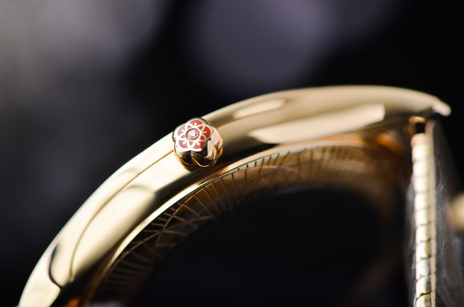 花朵表冠镶钻装饰,细节彰显精工与品味。