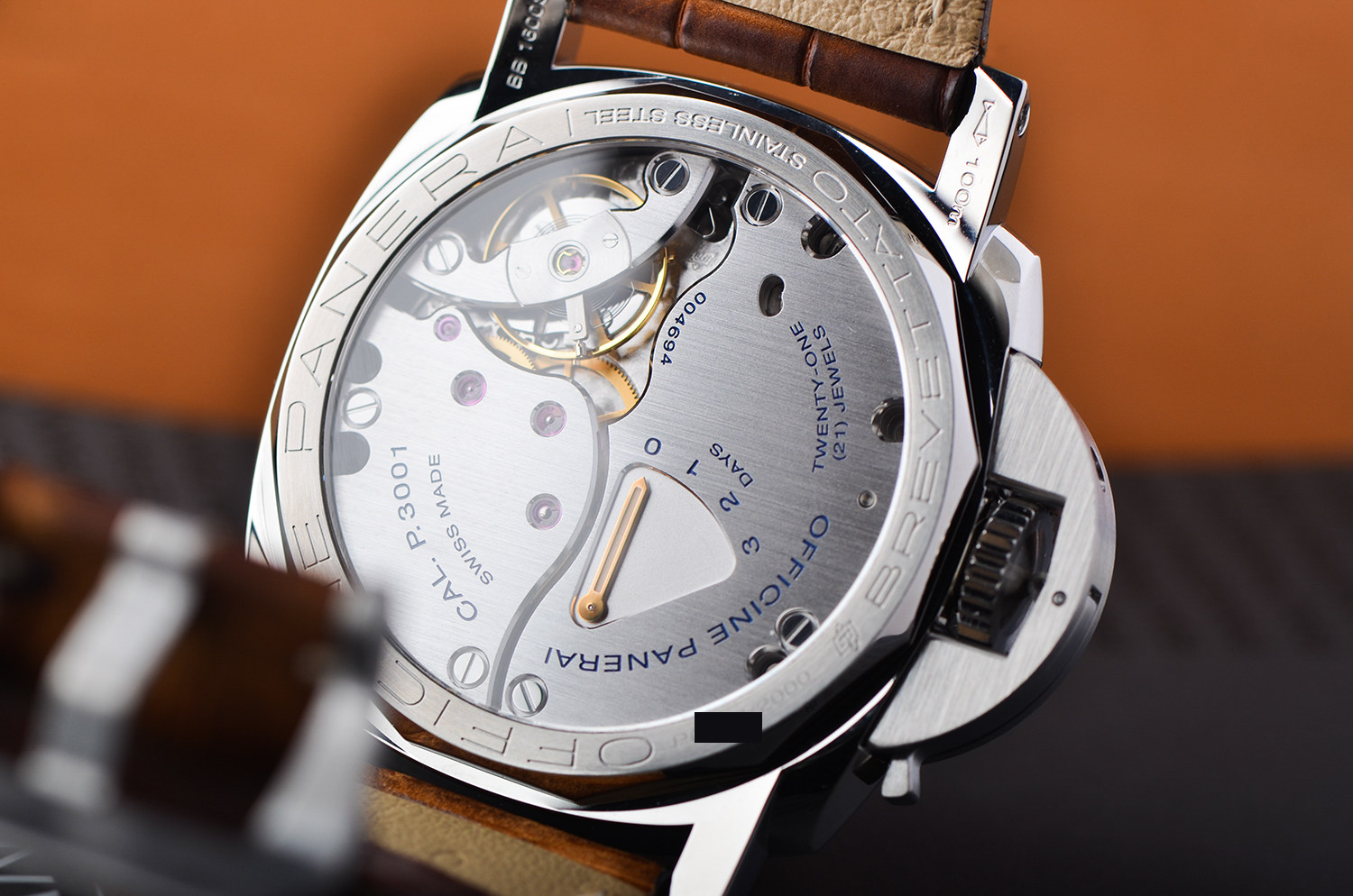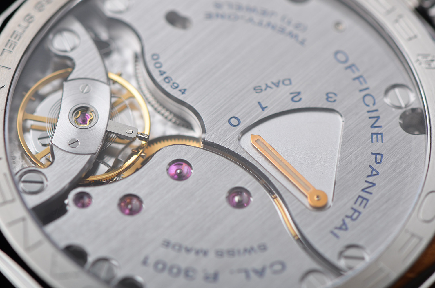 机芯:手动机械 CAL.P.3001,机芯夹板带动储显示,3天动能储备