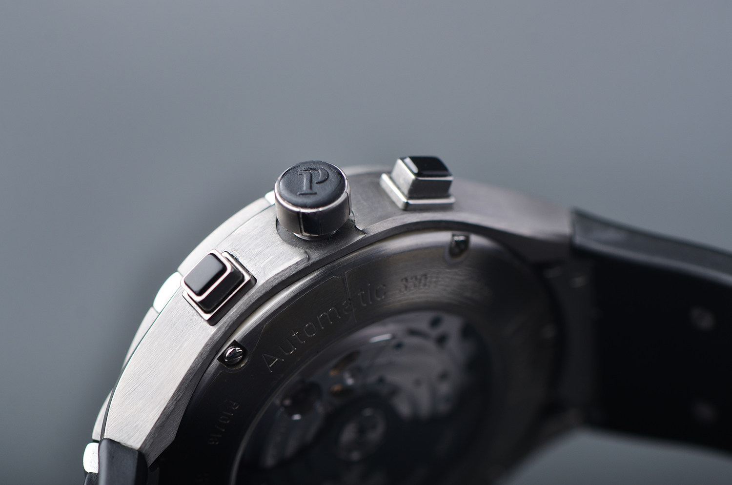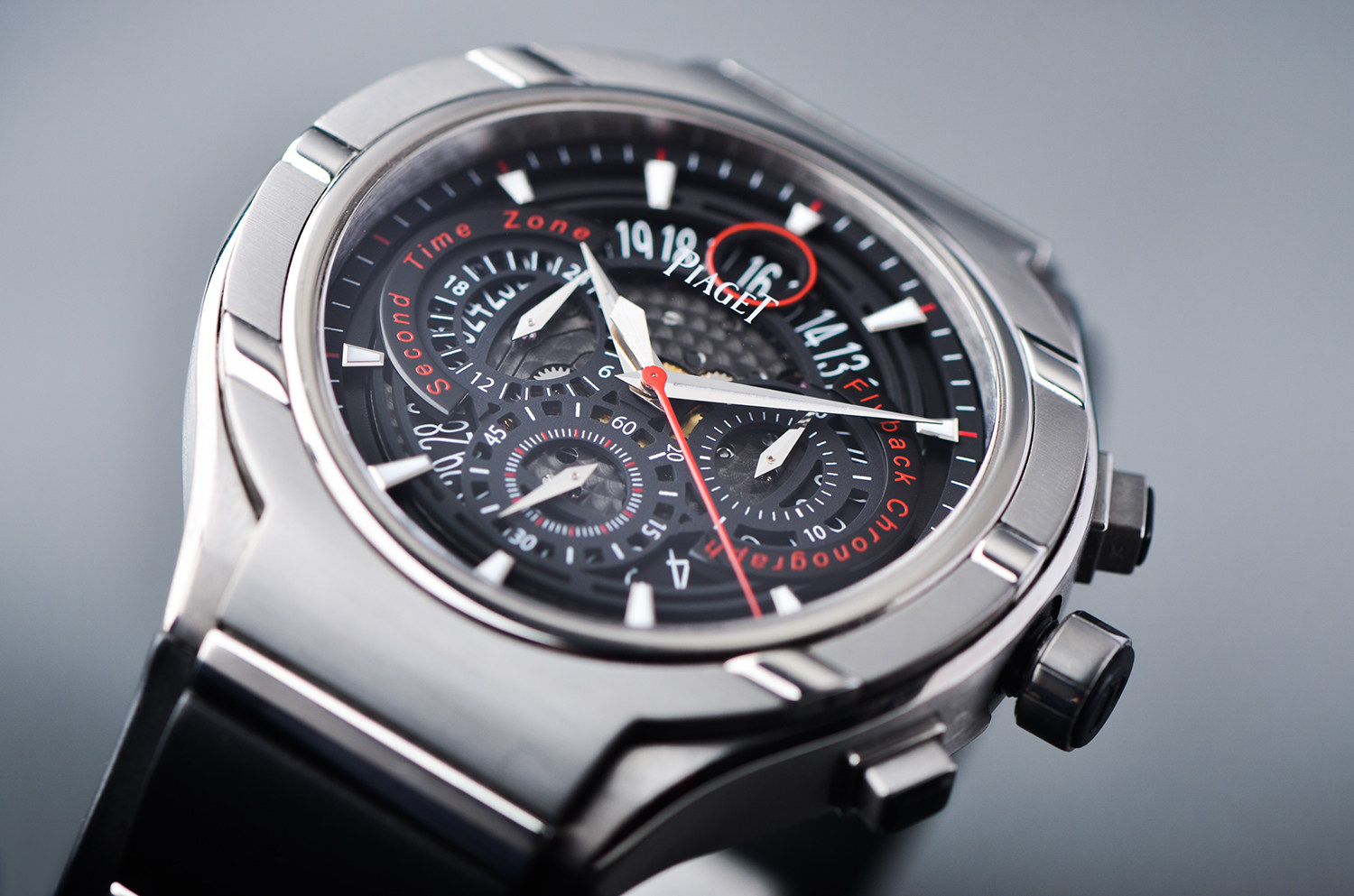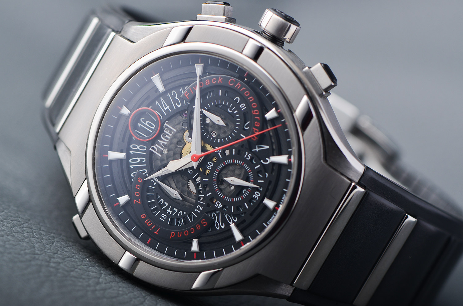 机芯:自动机械CAL.880P,50小时动力储备,飞返计时,日历,双时区功能