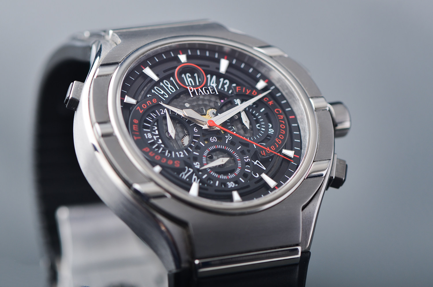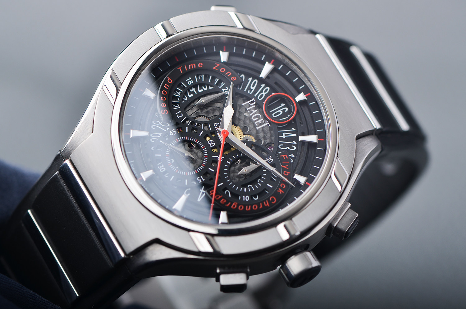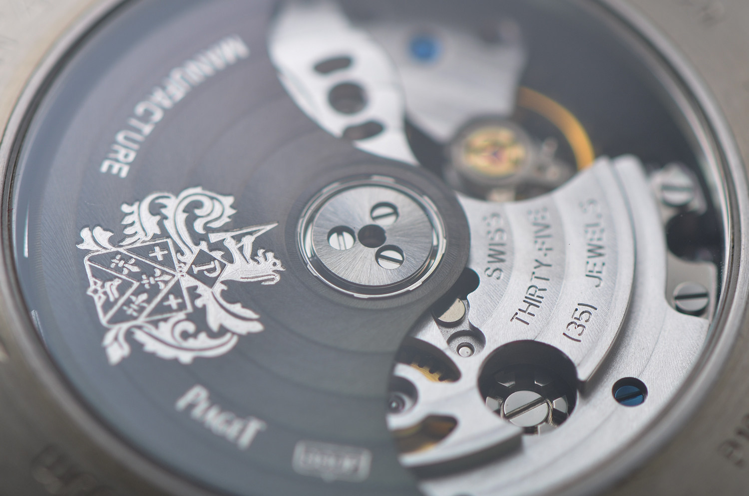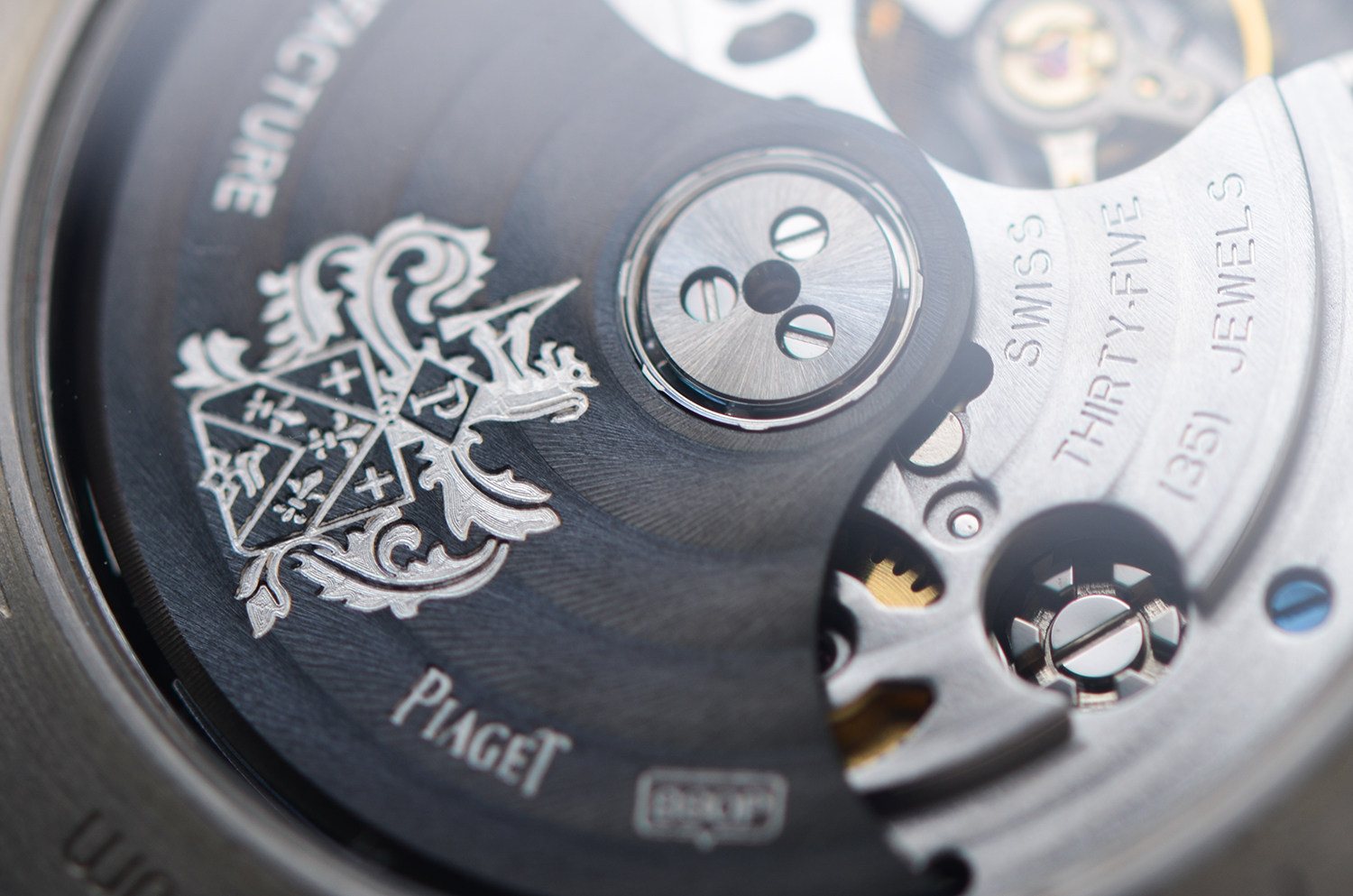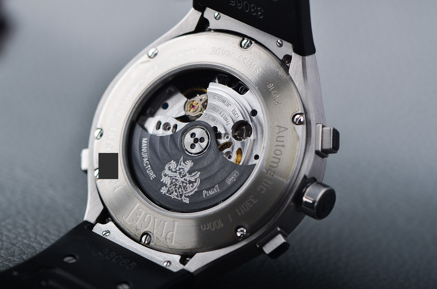 这枚机芯是真正为运动与旅行打造,功能实用、结构复杂,背透下可清晰欣赏伯爵一贯的细腻打磨。