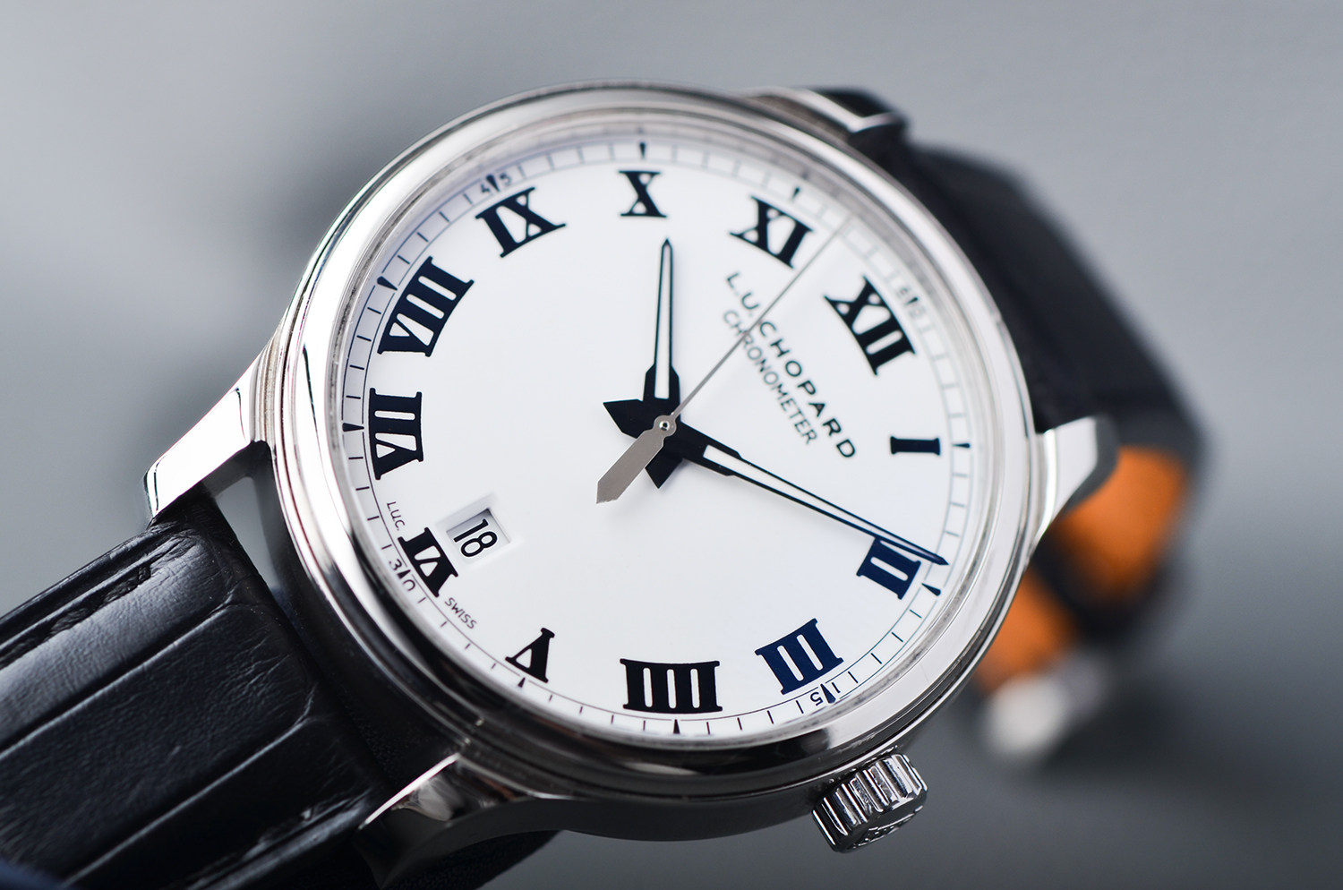 LUC1937经典系列搪瓷白盘大三针日历42MM自动皮带男表