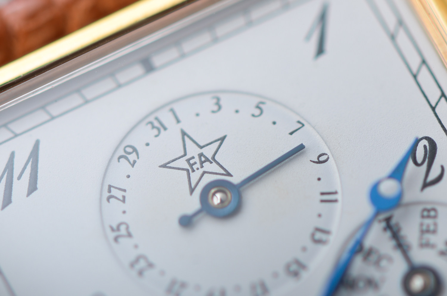 镀金矩形全历月相手上链皮带男表