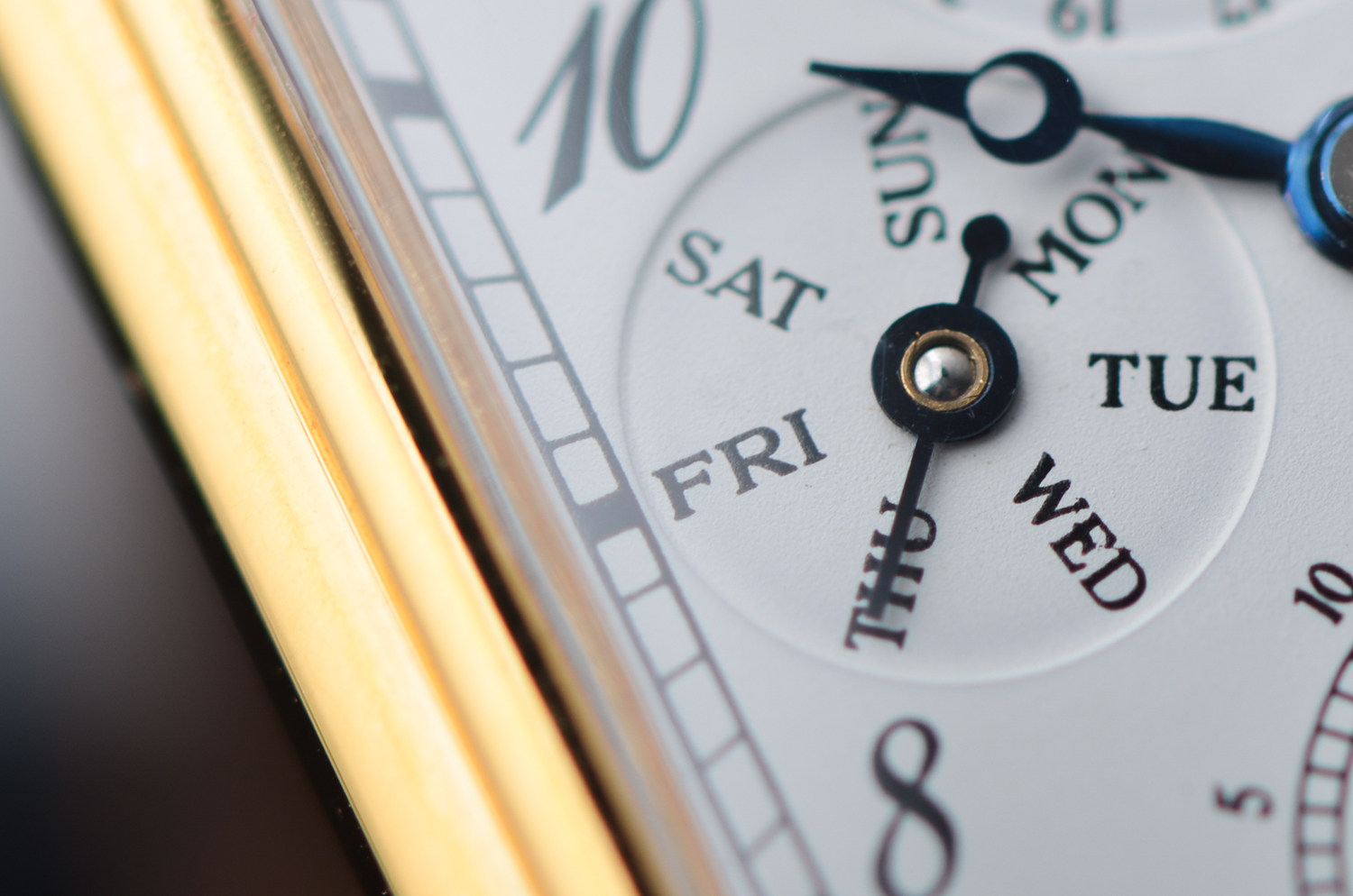 镀金色泽温润内敛,不浮夸,却极具年代感,矩形表壳比例完美还原 20 世纪中后期高级正装复杂表的审美。