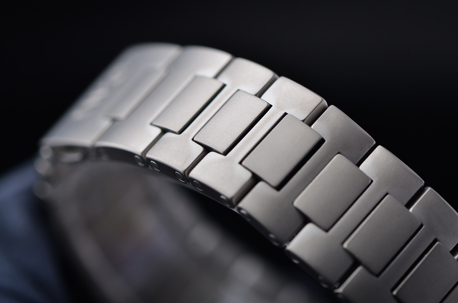 IW353601 采用钛金属表壳与表链,这是万国在专业运动表中极具代表性的用料选择: