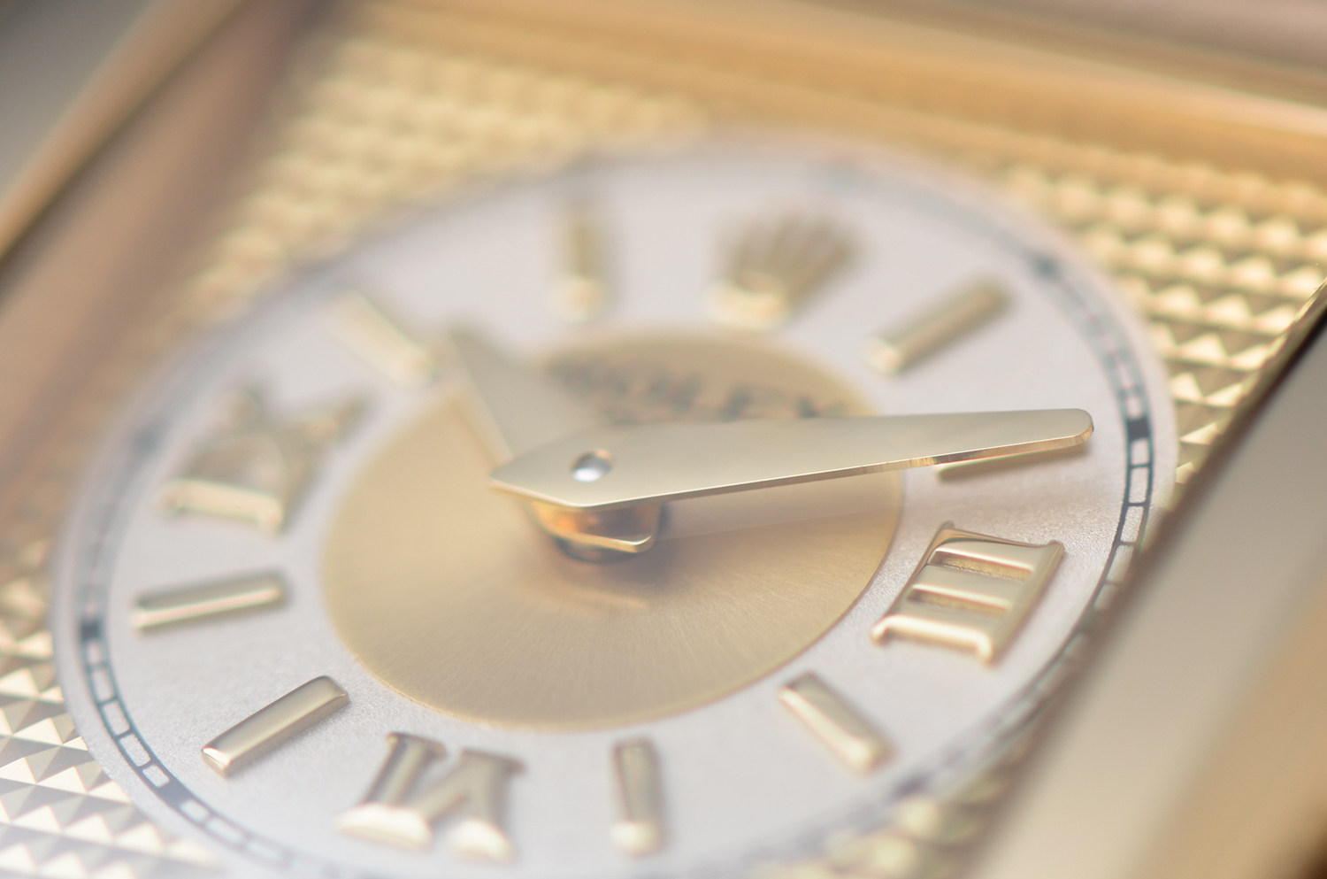 表盘: 立体金色“clou de Paris”巴黎饰钉纹表盘 ,黄金罗马数字刻度及指针