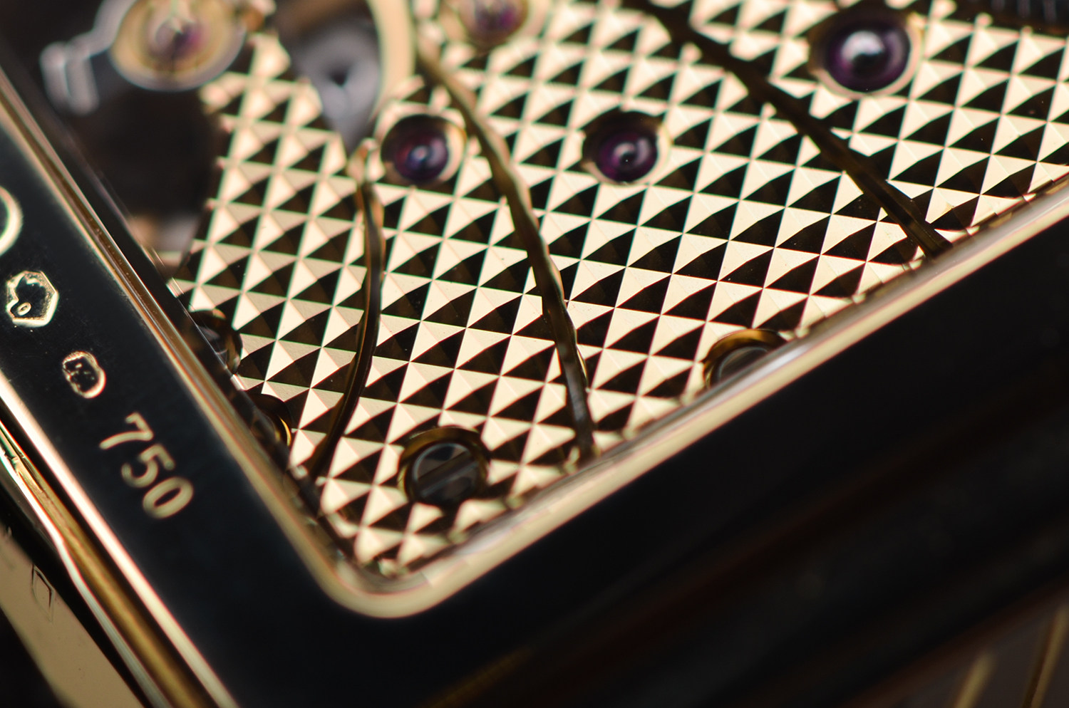 机芯:手上链CAL.7040-1,金色巴黎钉夹板,72小时动力储备