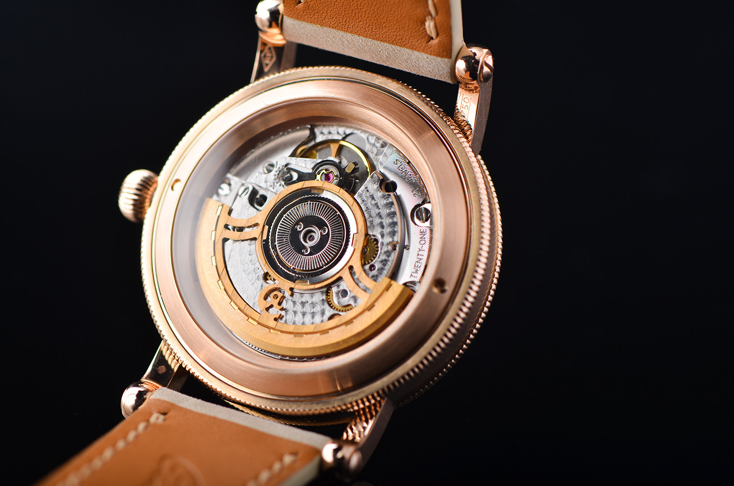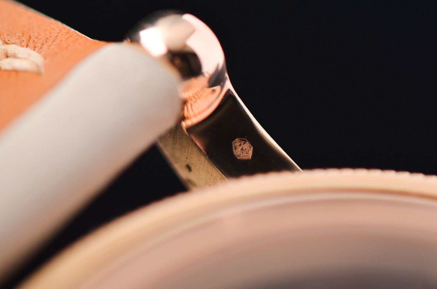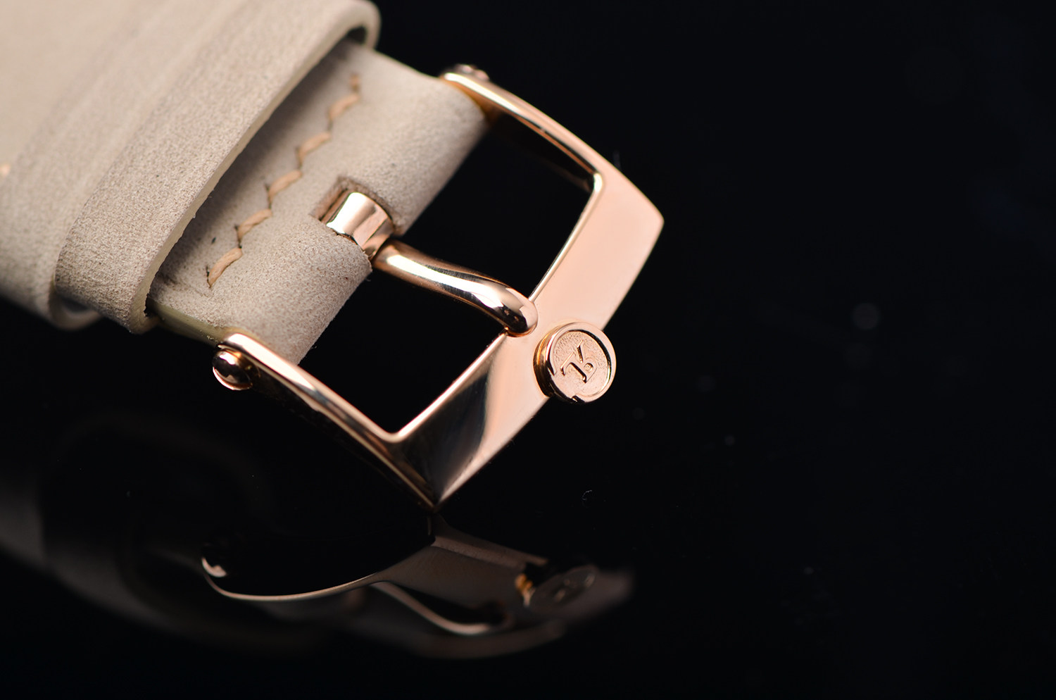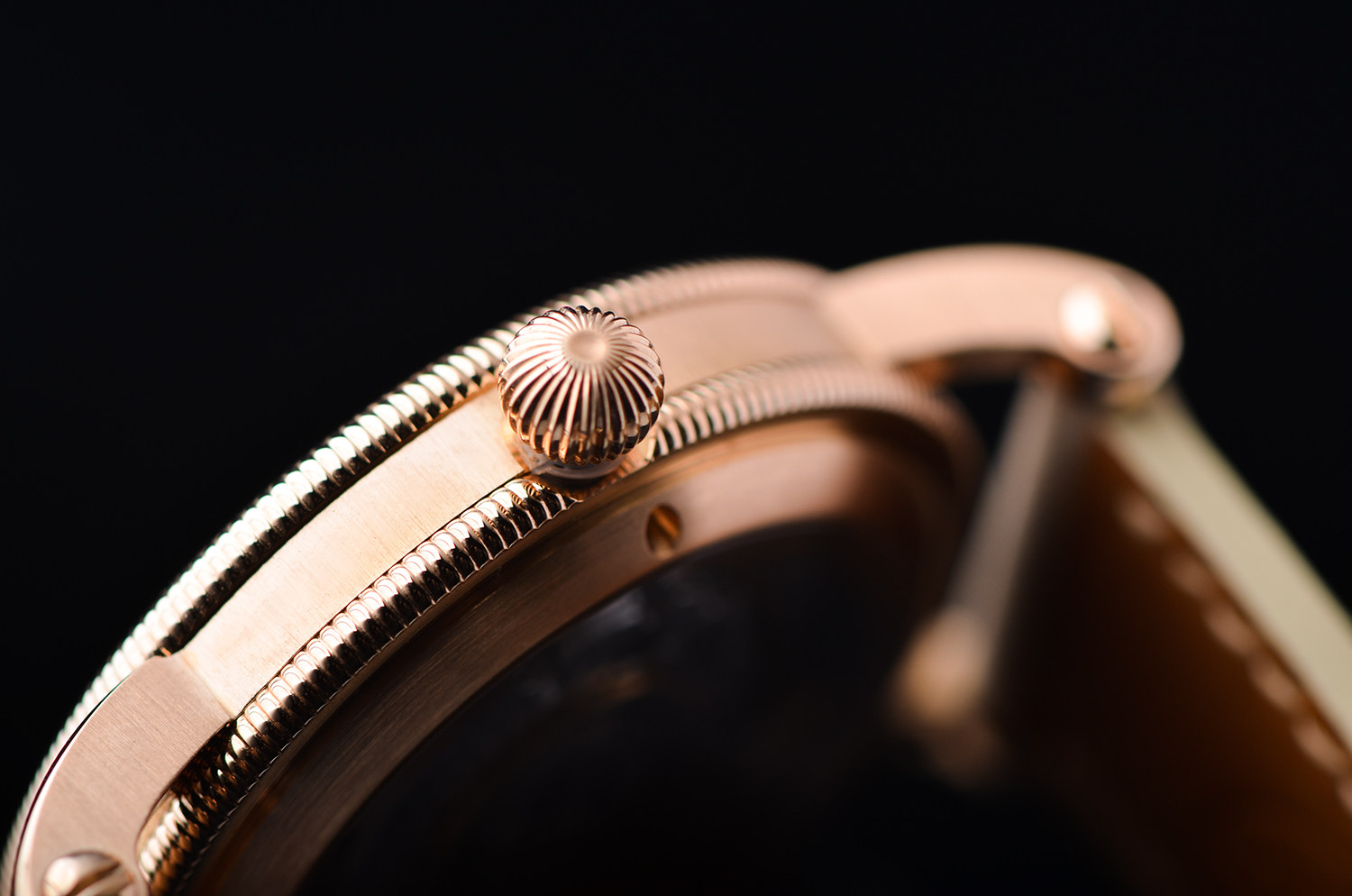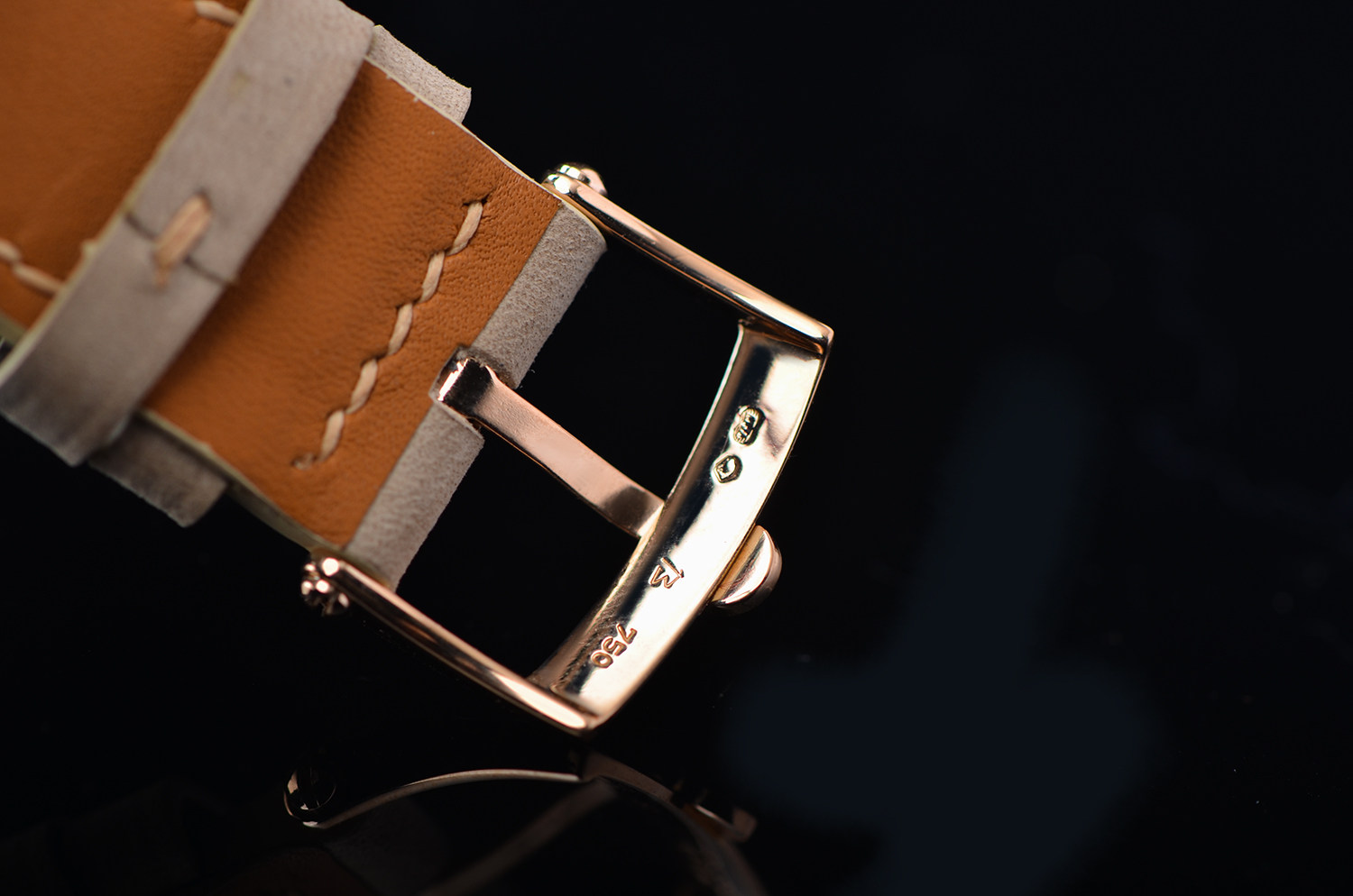 表壳:18K玫瑰金钱币纹表壳及表扣