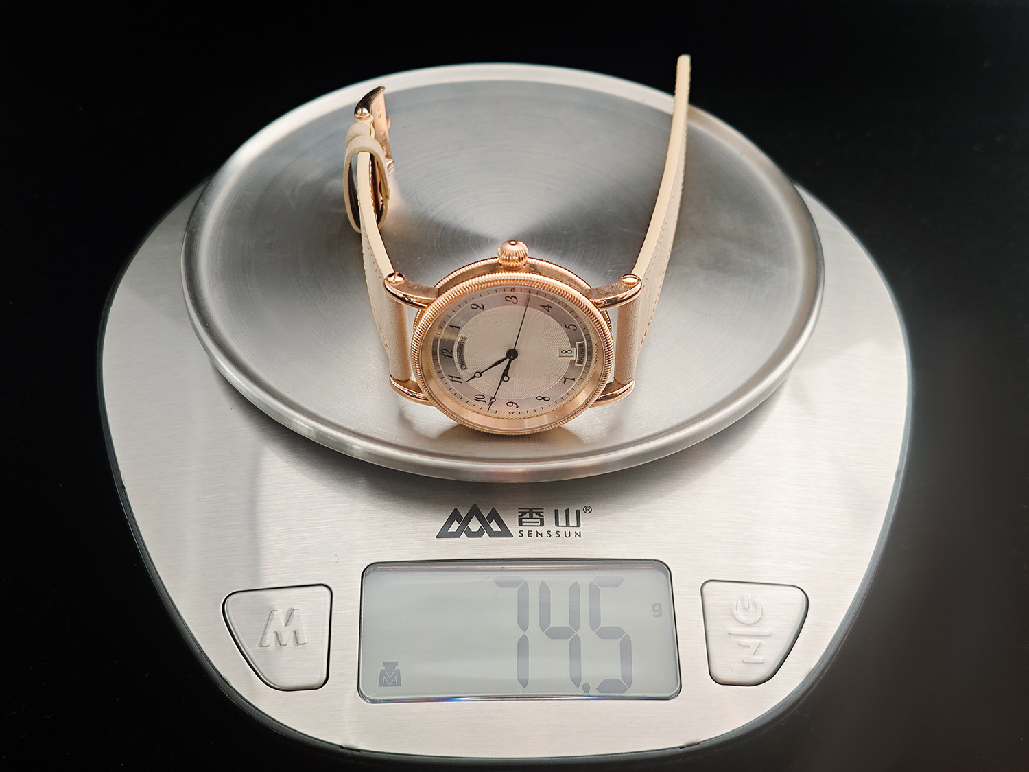 38mm 表径,线条优雅克制,是最适合正装佩戴的黄金尺寸。无论西装袖口还是日常商务着装,都显得从容而有分寸。