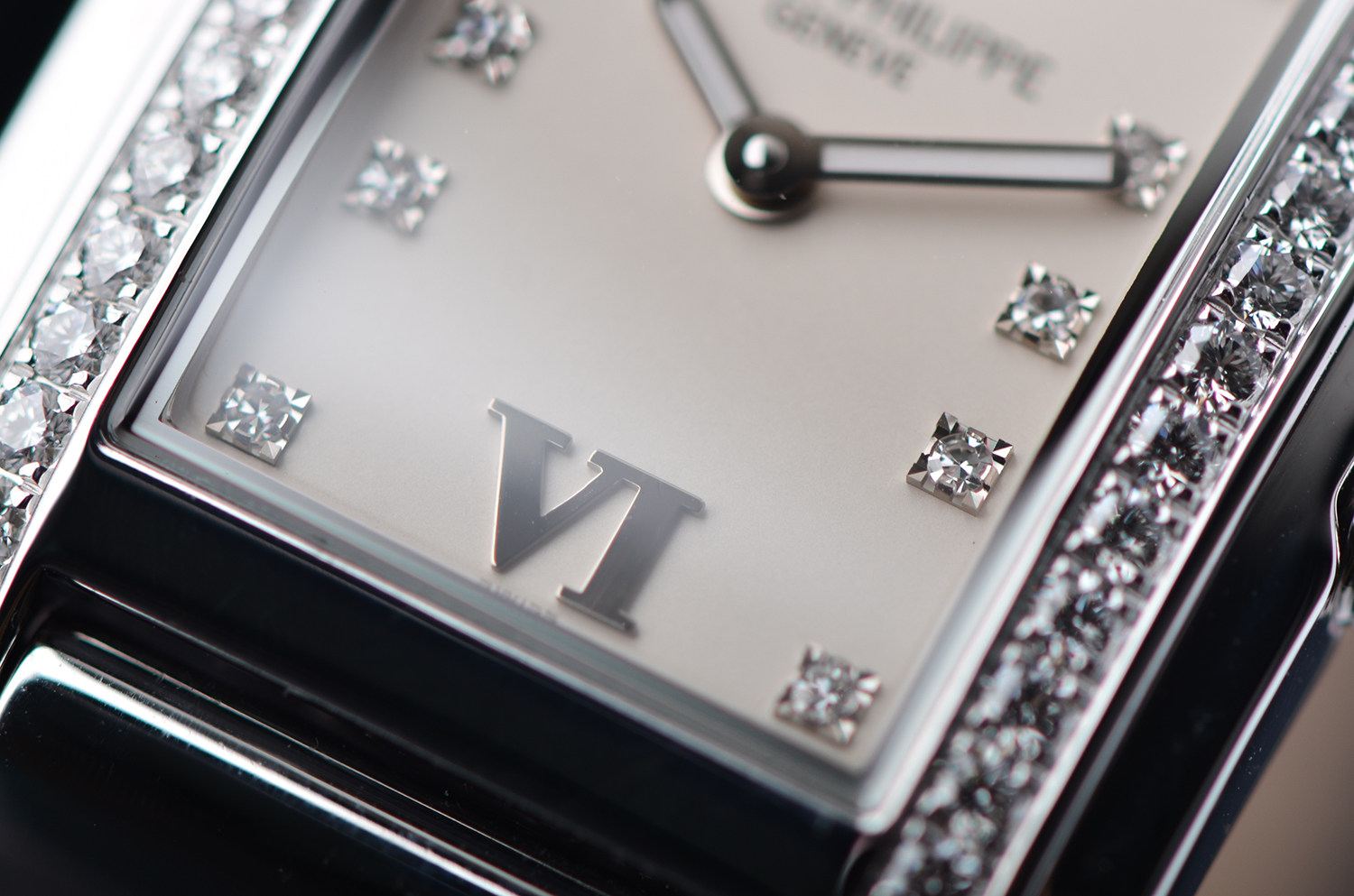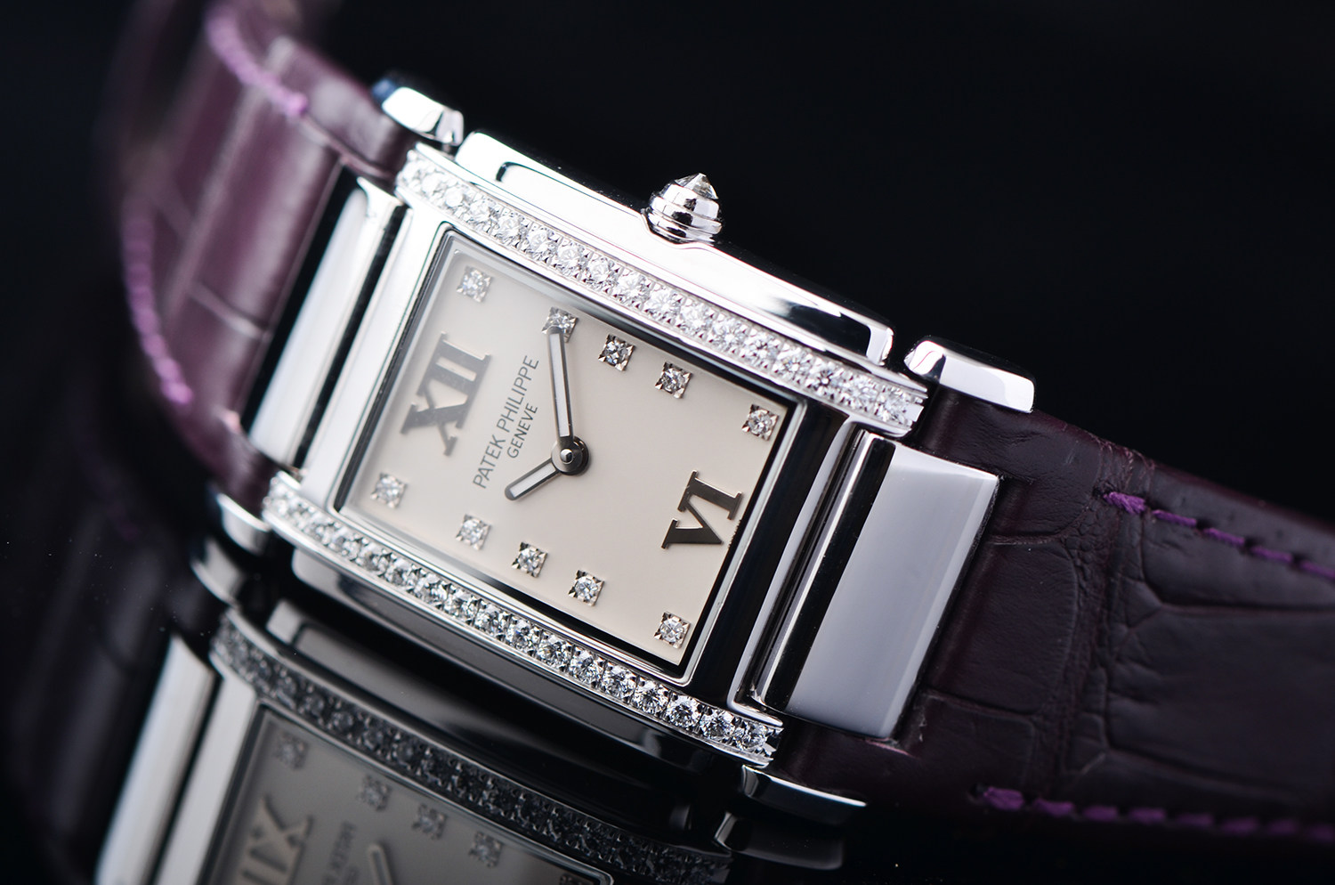 白金镶钻及刻度钻石英皮带女表