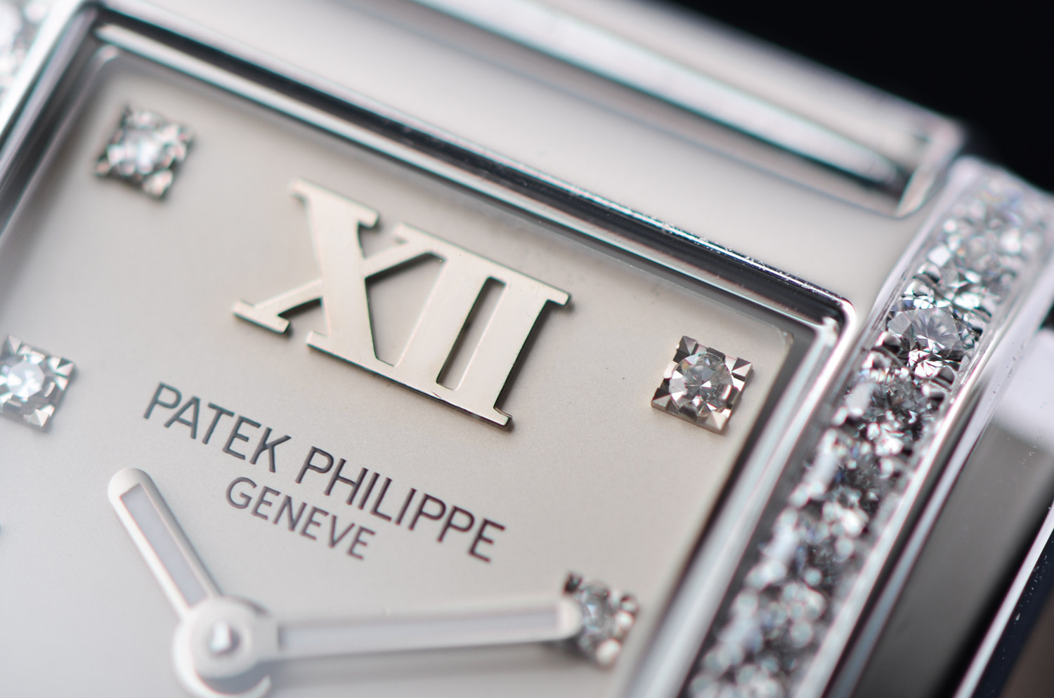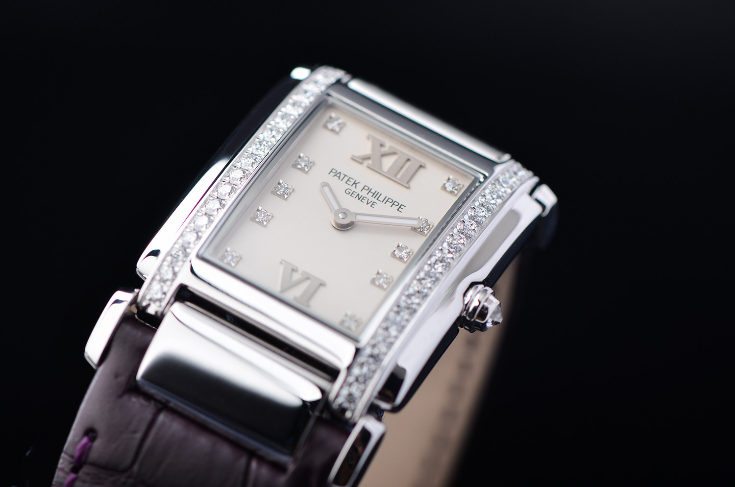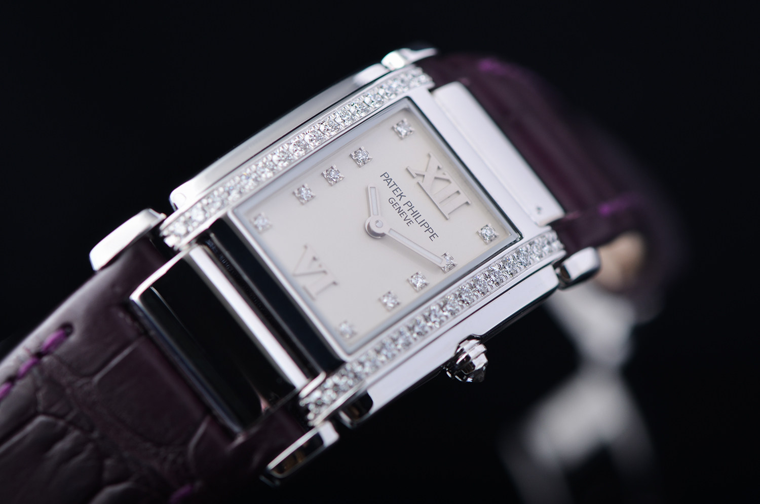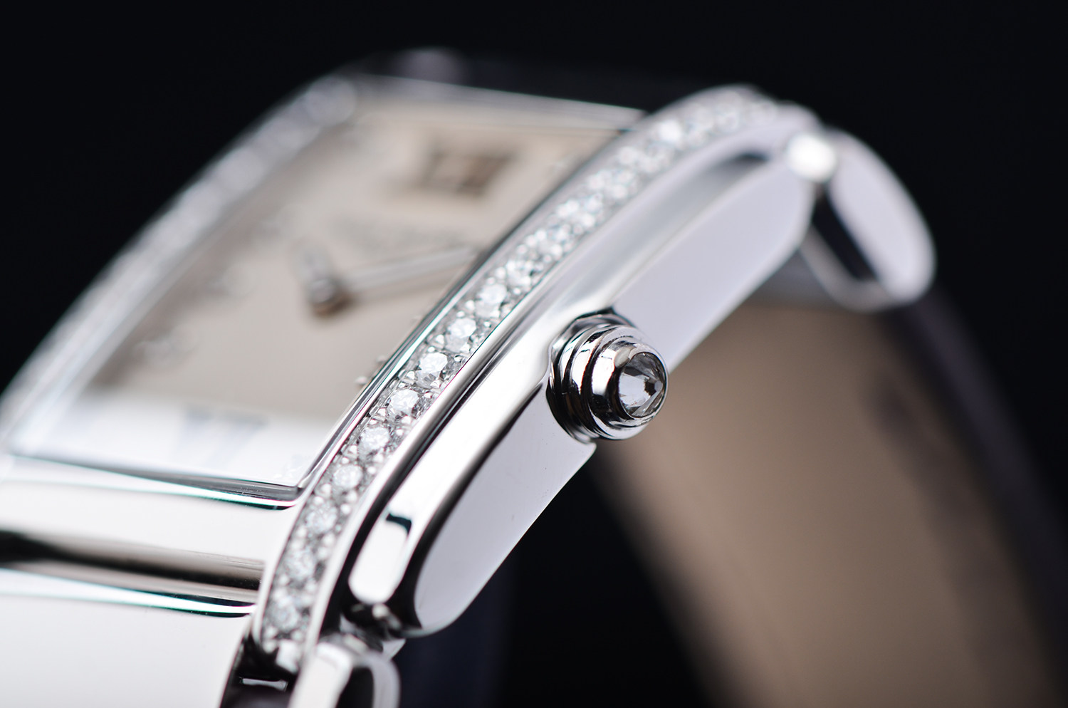 18K 白金矩形表壳,线条利落、比例精准