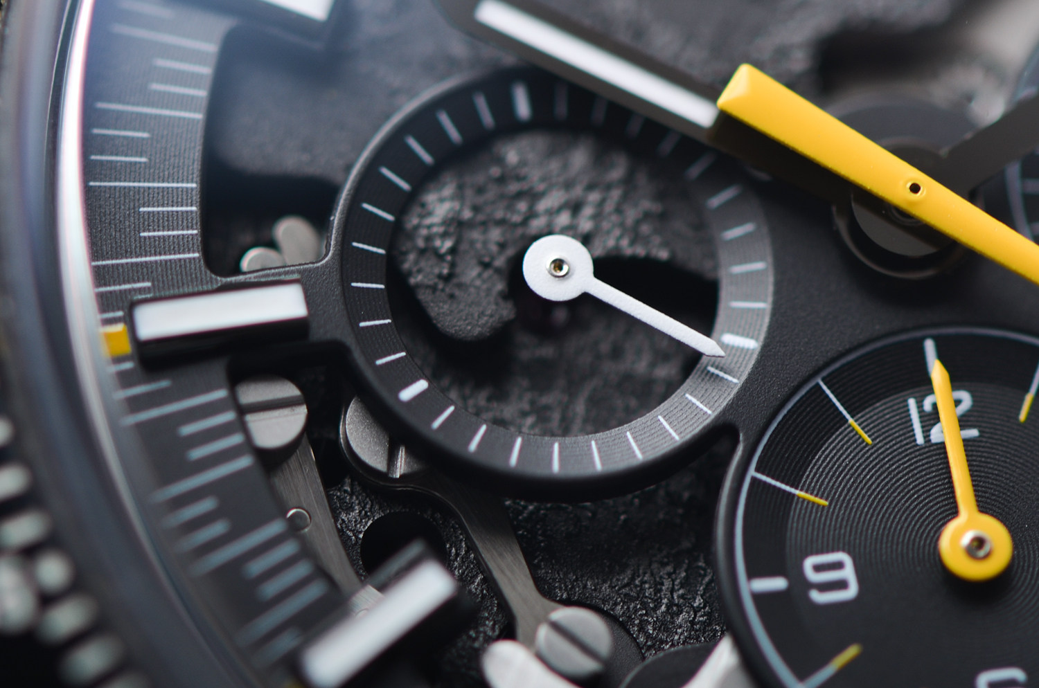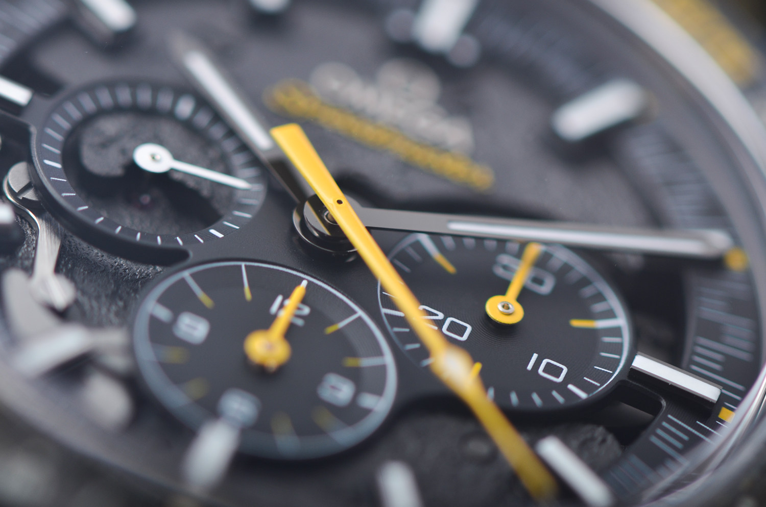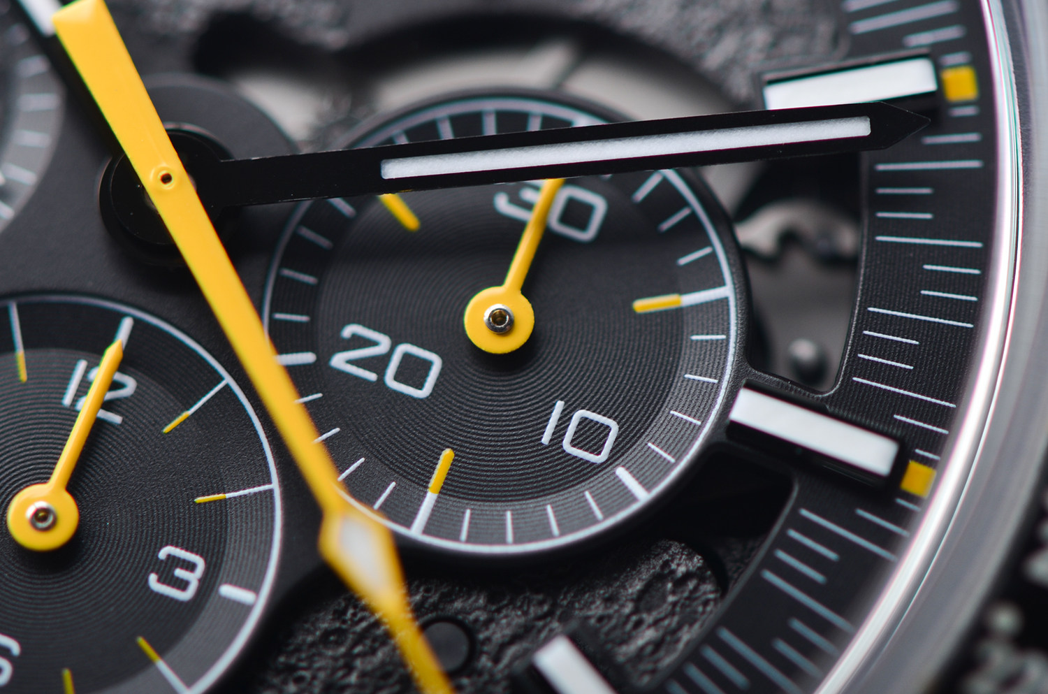 表盘:月球表面元素镂空计时表盘,夜光刻度及指针
