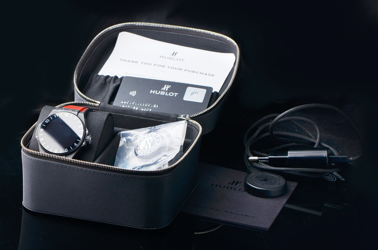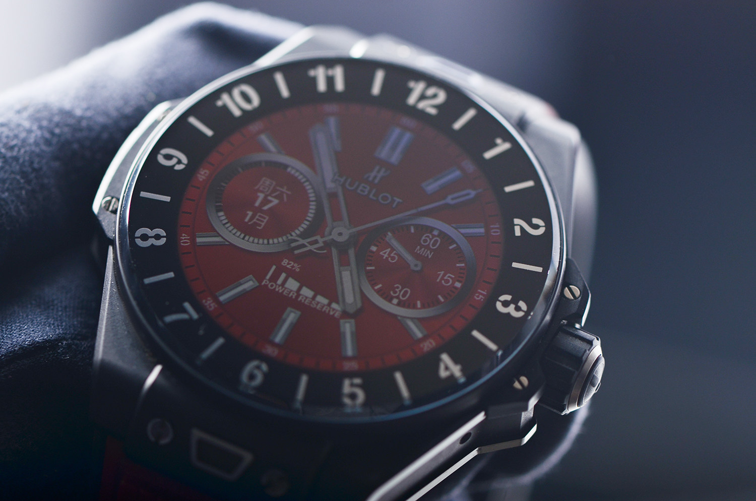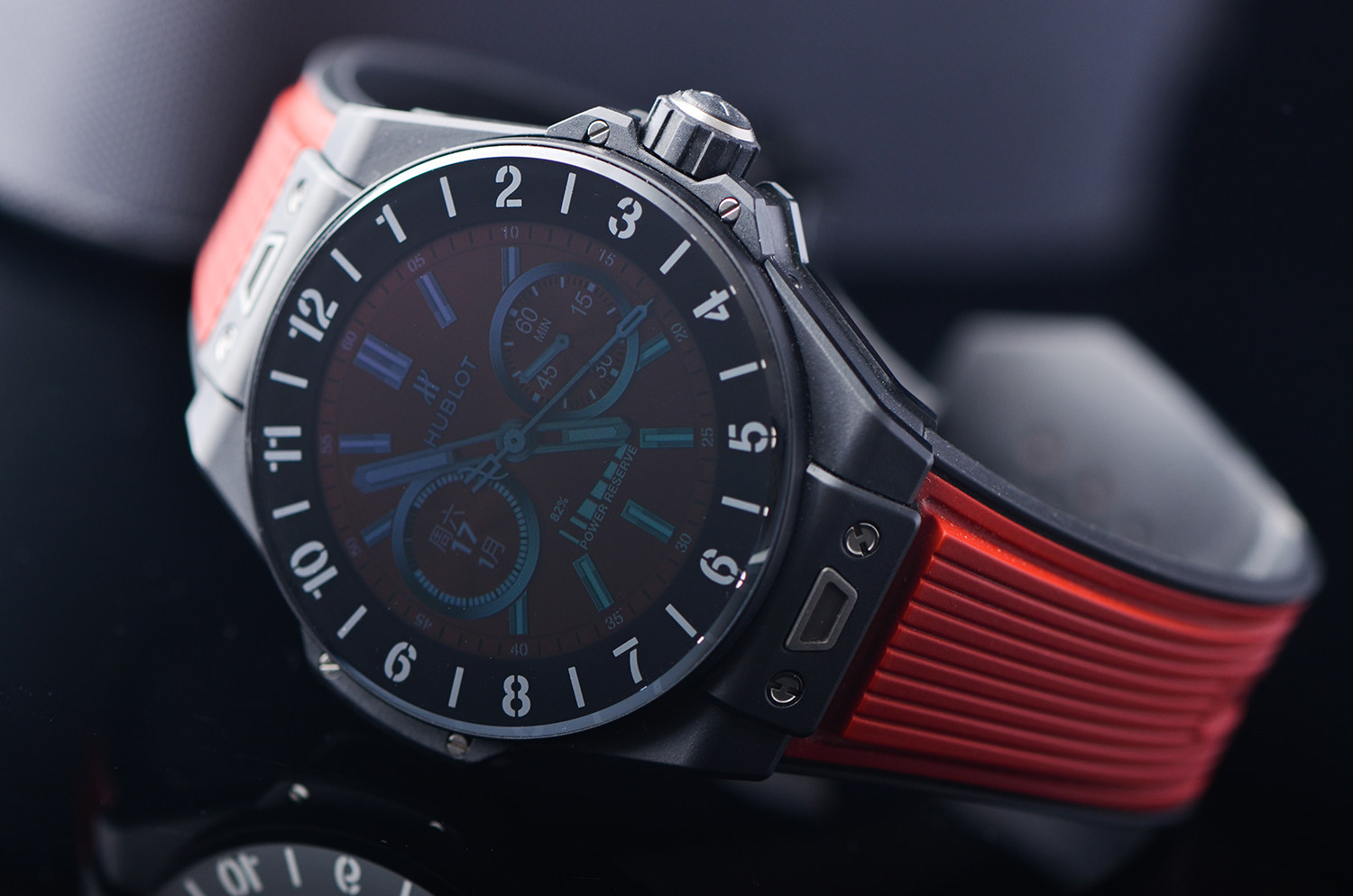 大爆炸系列黑陶瓷及钛42MM折叠扣胶带智能腕表