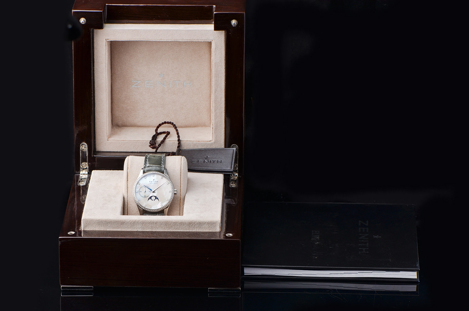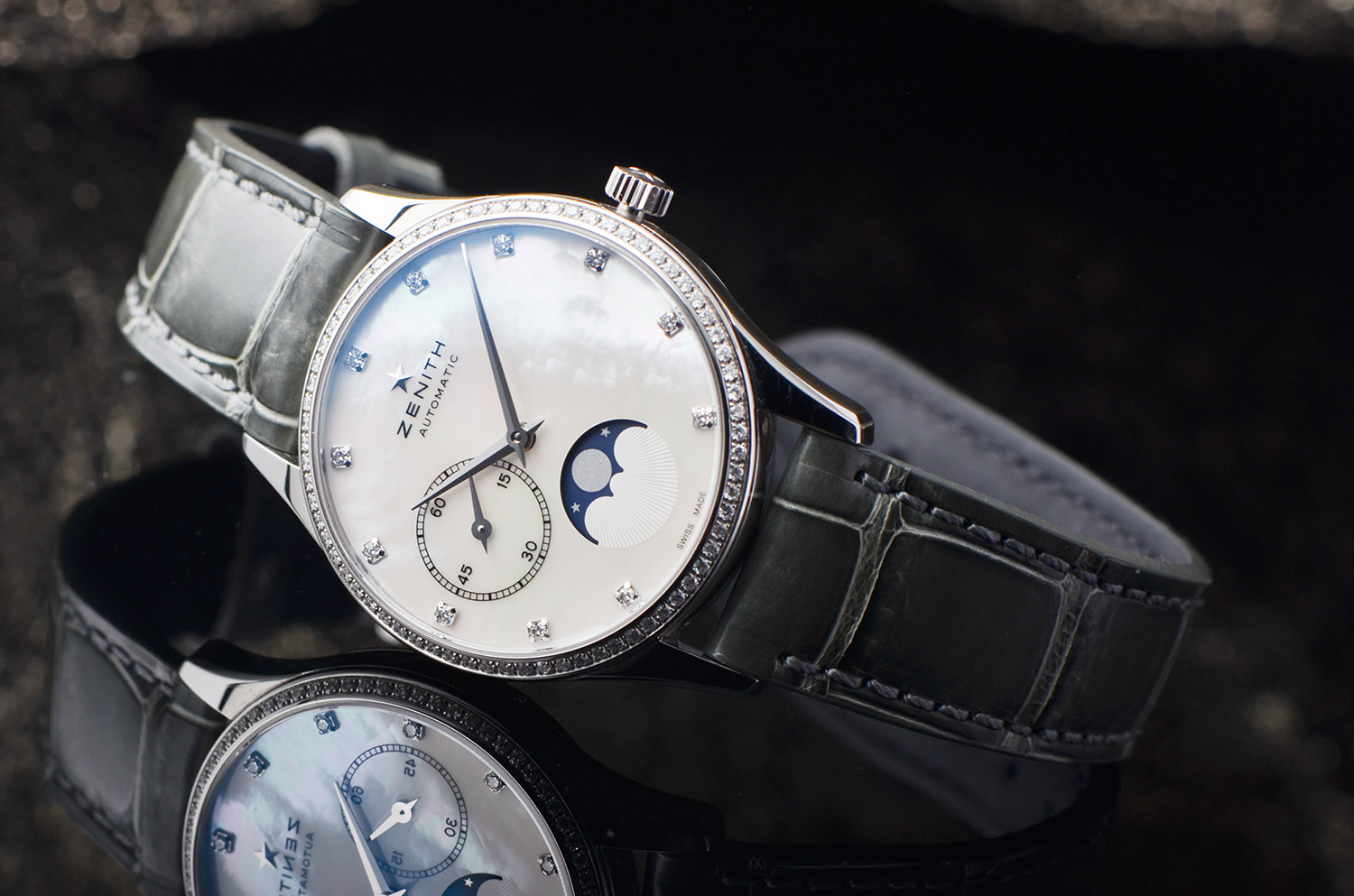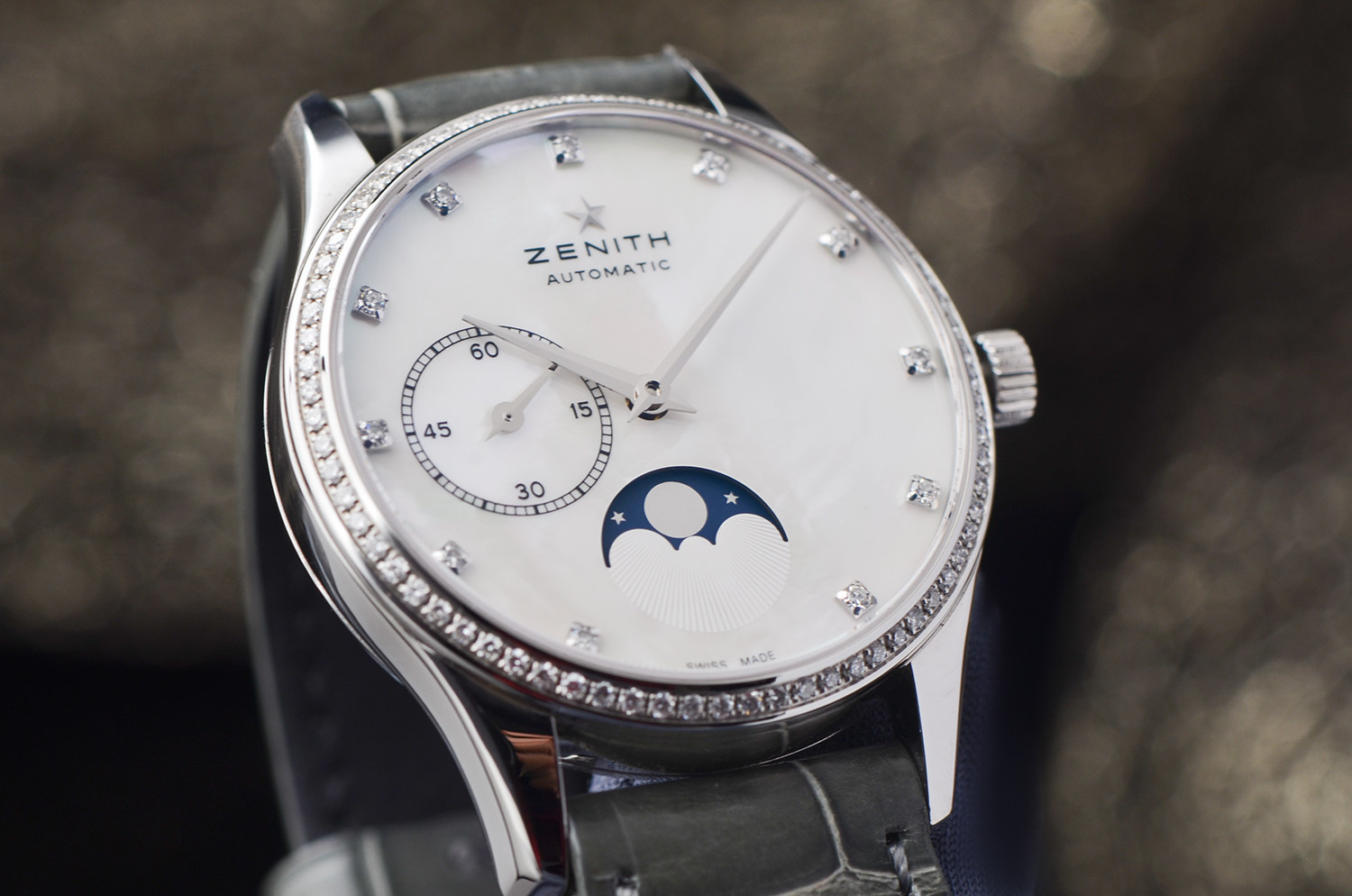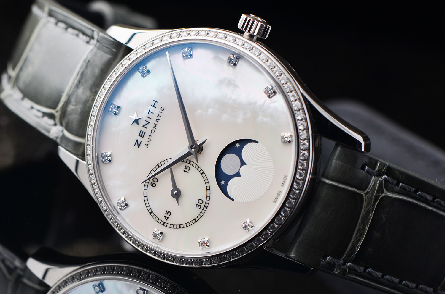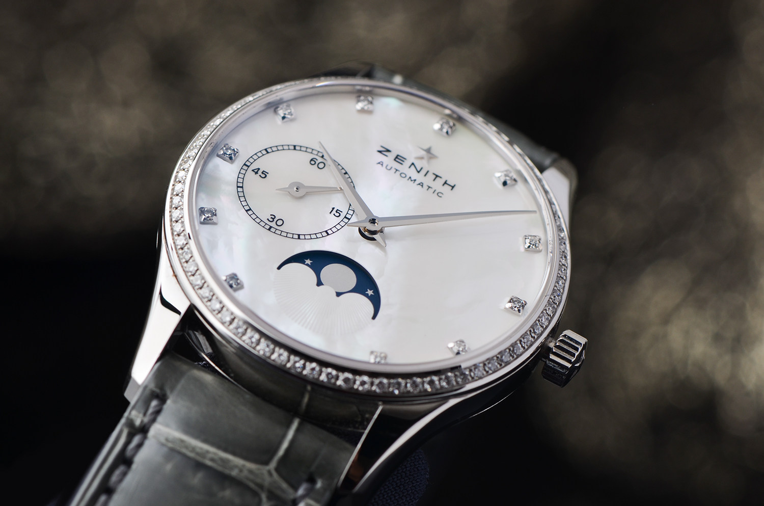 原厂镶钻,Elite 机芯,月相功能,气质永不过时。