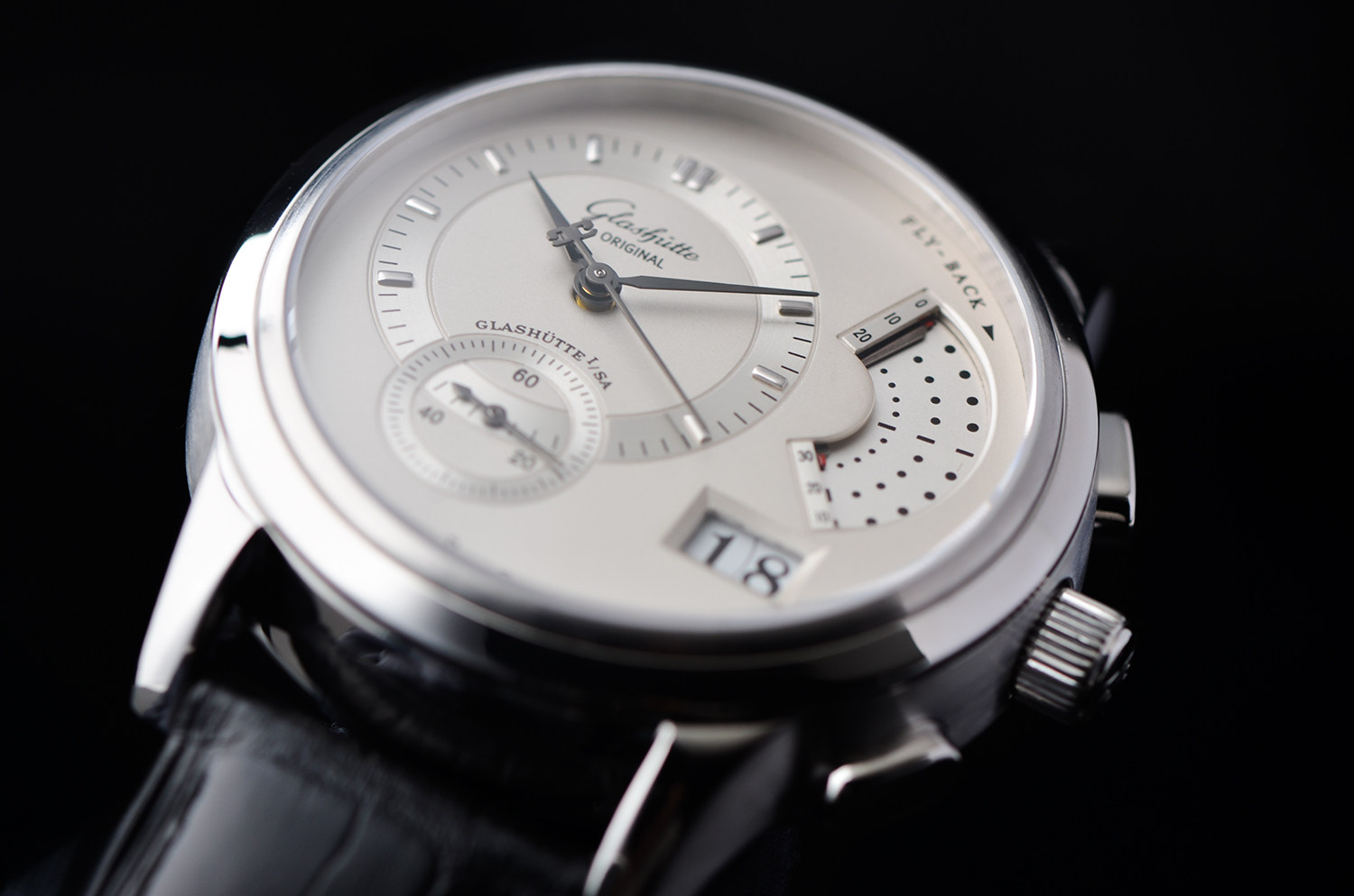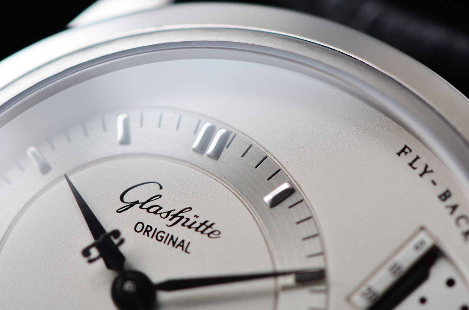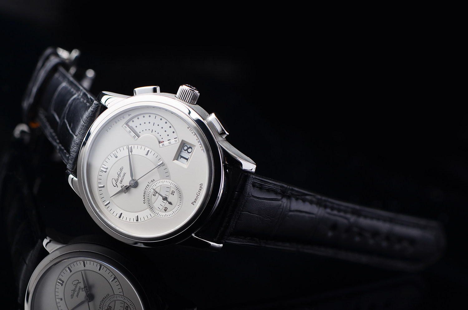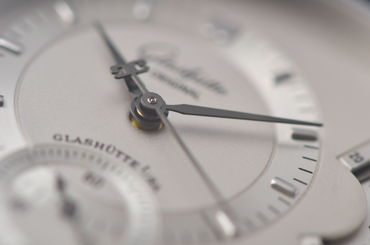 偏心时分盘、计时小盘与小秒针遵循黄金比例排列,不对称却极度平衡——这是格拉苏蒂原创独有的设计语言,也是德系制表理性与美感的完美结合。