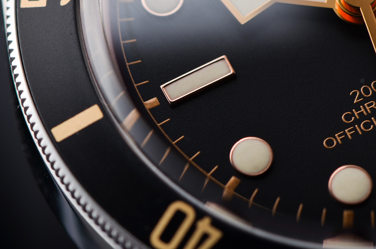 无日历黑盘 + 雪花指针,表盘干净、对称、耐看十年不腻。