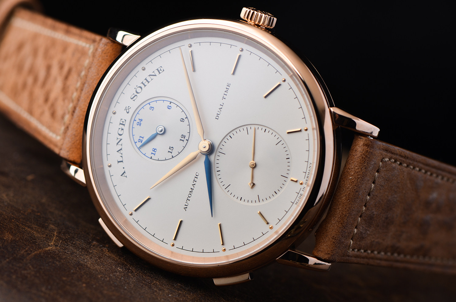 在朗格体系中,Saxonia Dual Time 玫瑰金版本本就产量稀少,