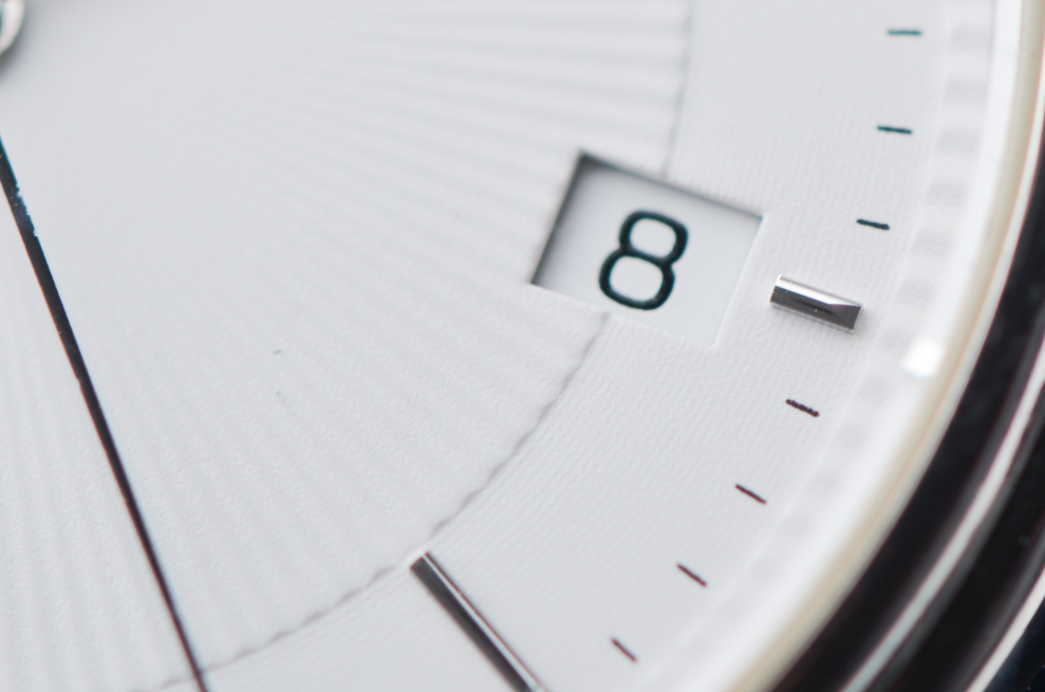 表盘:立体白色镌刻表盘,日历显示