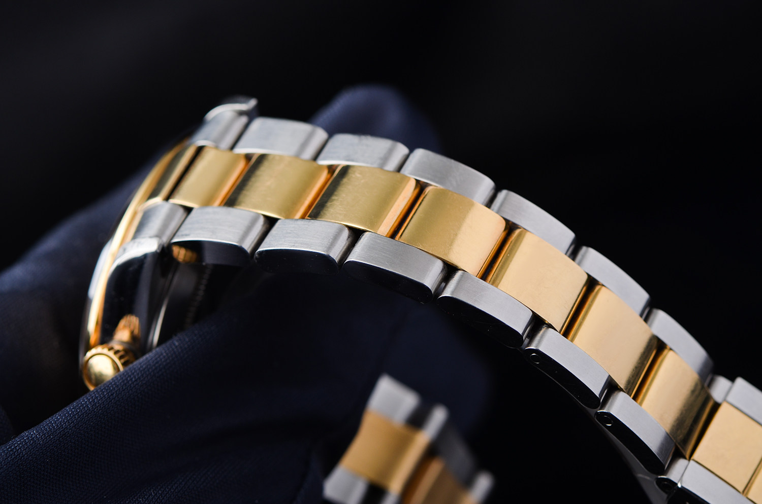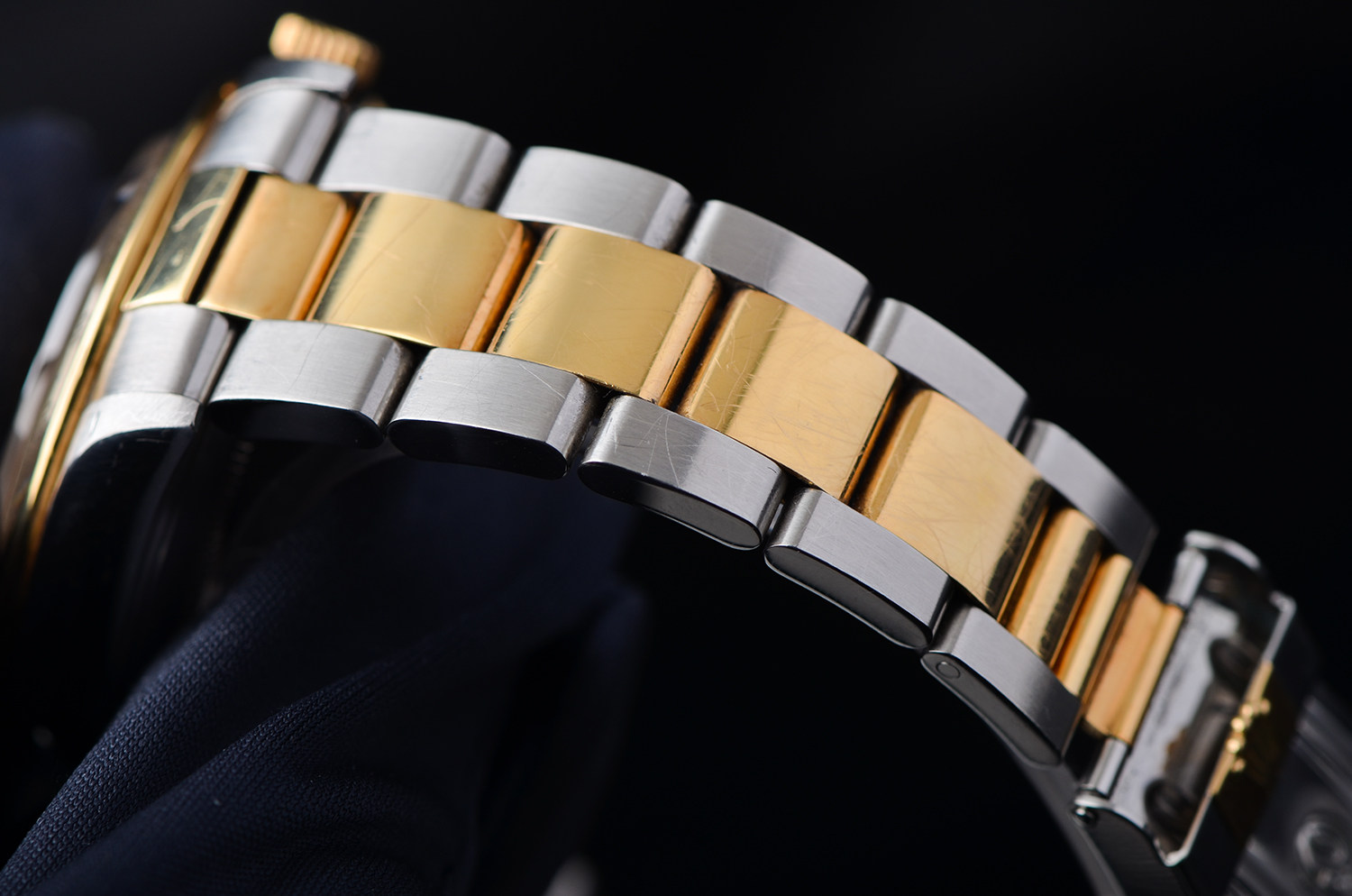 ✨ 标志性设计:40mm 表径,精钢与 18K 黄金双色表壳与表链,搭配典雅的金色表盘,展现出奢华的运动风范。