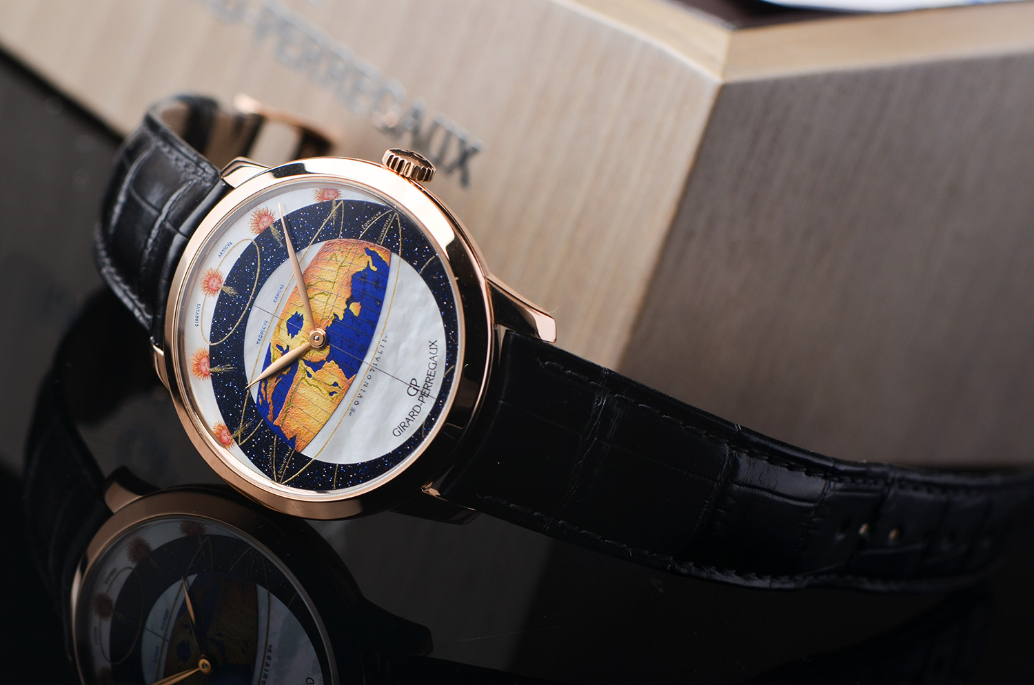 1966系列地心说限量版玫瑰金彩绘珐琅贝母沙金石盘40MM自动皮带男表