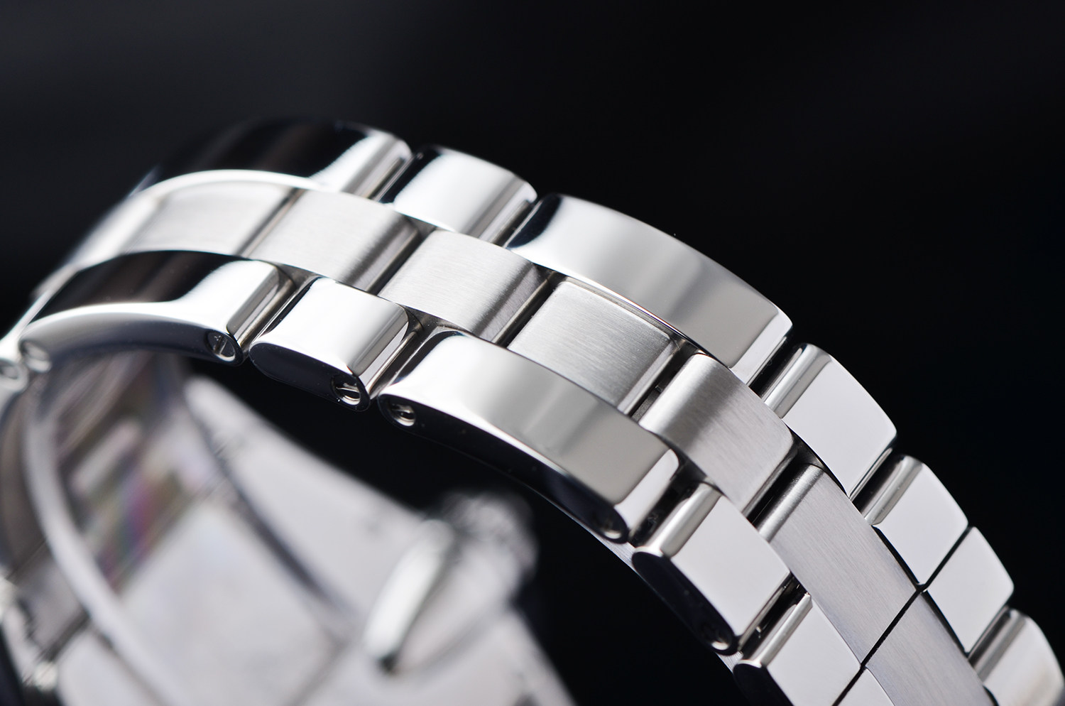 精钢一体式表壳与表链过渡自然,佩戴贴合舒适,在视觉上兼具力量感与精致感——既可以搭配正装,也能日常佩戴。