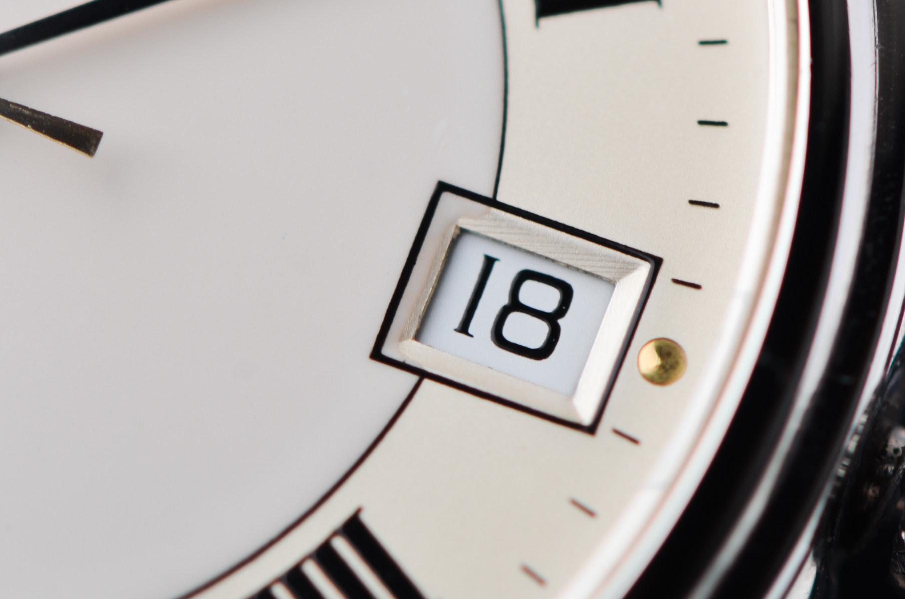 表盘:立体米白双色表盘,罗马数字刻度,日历显示