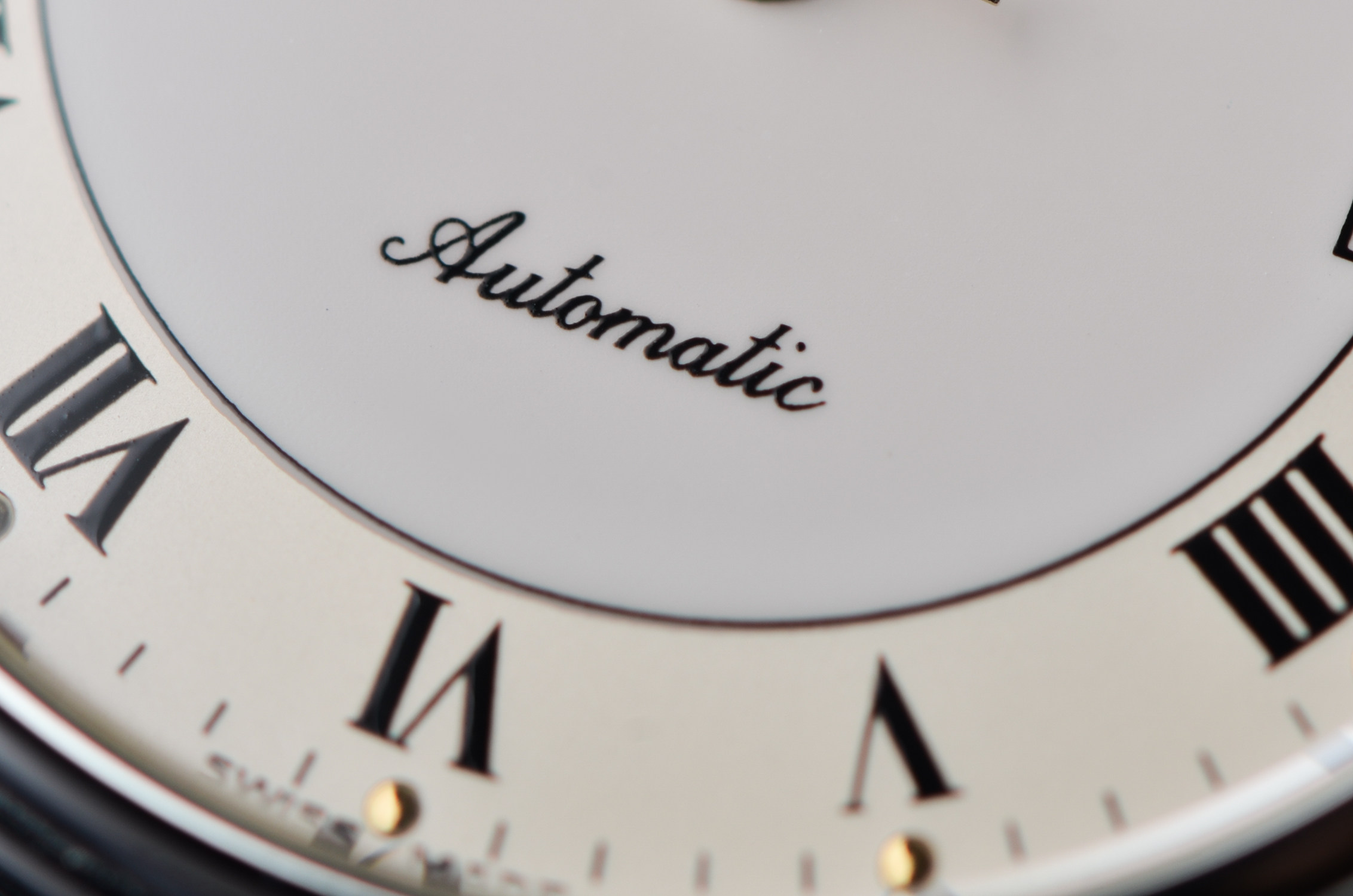 罗马数字刻度搭配温润的浅色表盘,低调中透着一丝老派绅士气质。